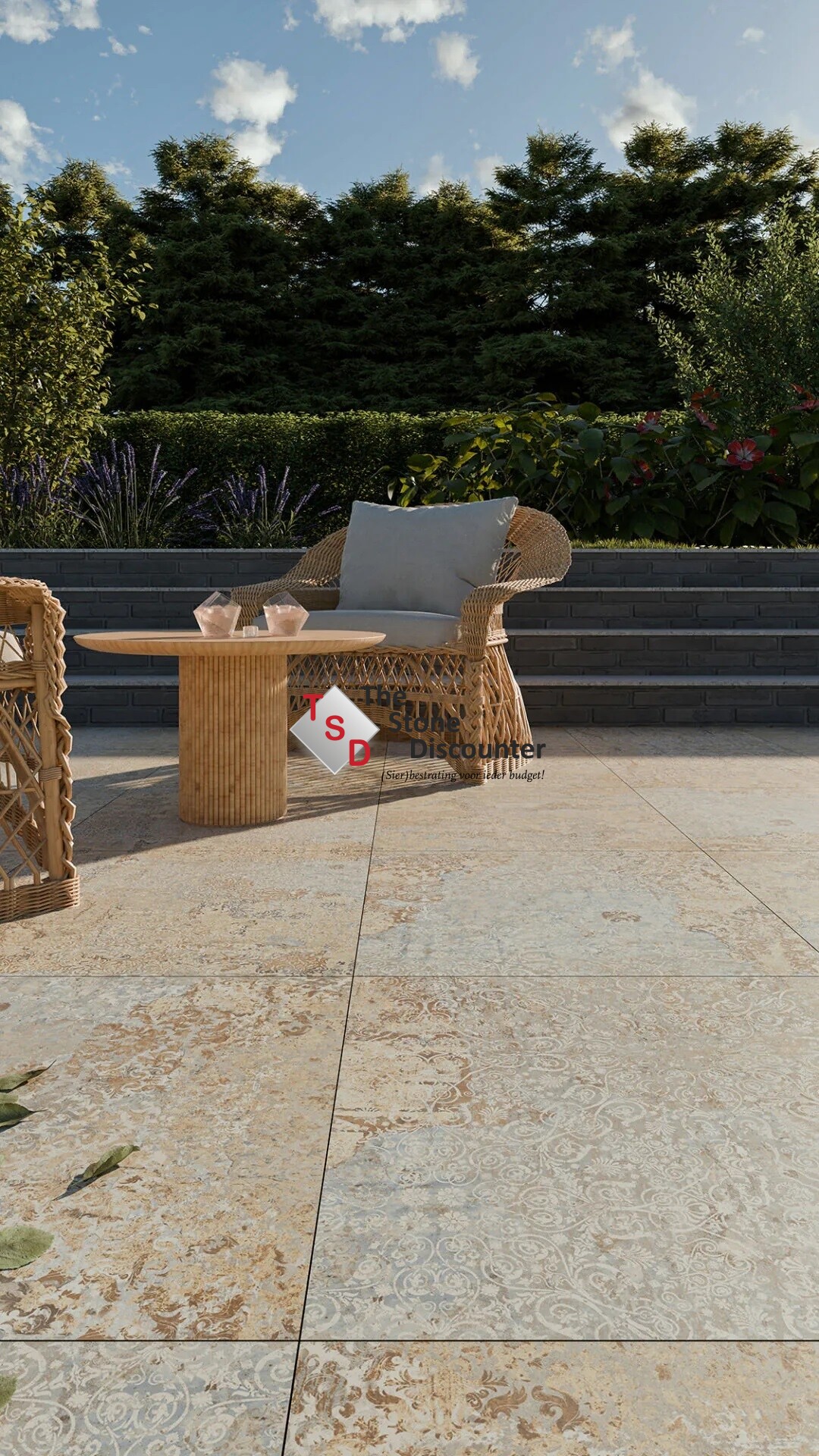 Zoals al genoemd nemen de keramische tuintegels weinig tot geen vocht en vuil op. Verder koopt u met de Cerasun Catania Decor Multi 60x60x4 cm een kleurecht en ook een krasvaste tuintegel.
