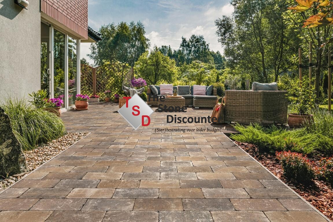 De Tumbelton Extra Walnut 30x20x6 cm is een getrommelde bestrating met een speelse look. Houd u niet van strakke bestrating, of wilt u juist uw strakke bestrating breken door er een ander materiaal tussendoor te leggen? Kijk dan eens in deze prachtige gevarieerde serie. Door de door en door afwerking van deze steen, zal de structuur na verloop van tijd wat grover worden, wat hoort bij de autentieke look. Ook zal de kleur wat vervagen. Wilt u meer over deze steen weten? Of zoekt u juist iets anders? Kom langs en laat u informeren over de vele mogelijkheden die we u kunnen bieden op het gebied van (sier)bestrating.