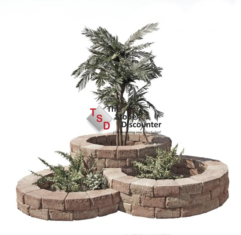 De Pilestone Ronde Bloembak Primavera is een prachtig getrommeld stapelblok met 2 ruwe zijden. De Pilestone heeft een trapeziumvorm, waardoor er gemakkelijk rondingen gelegd kunnen worden. De Pilestone Line is de rechte variant, waarmee de rechte stukken mooi opgevangen kunnen worden.