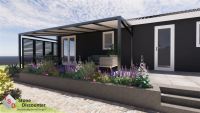 Tuin met verhoogd terras bij chalet